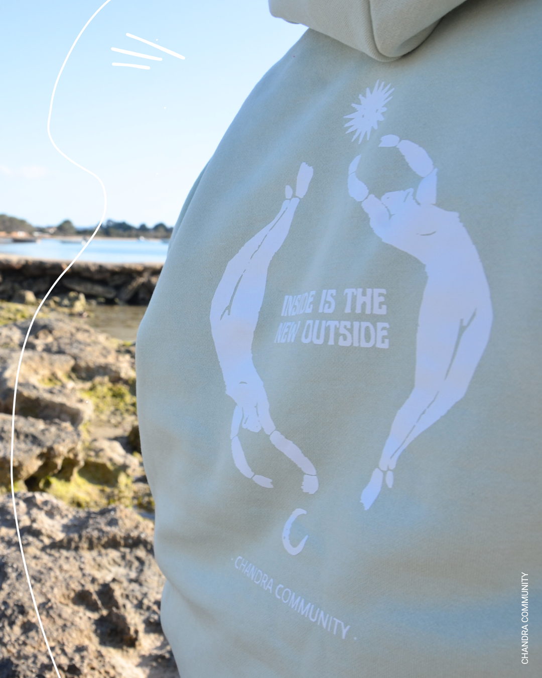 Diseñadas por nosotras, las sudaderas de Chandra Community son suaves, calentitas y están hechas con mucho amor. Dos diseños que remiten a la esencia de esta comunidad: cuerpos que fluyen, seres en comunión, la energía de la luna y el sol unidas en el flujo energético más potente que existe: el amor entre los seres.